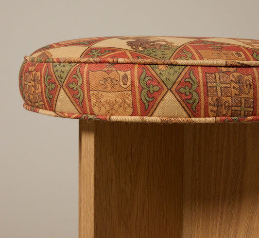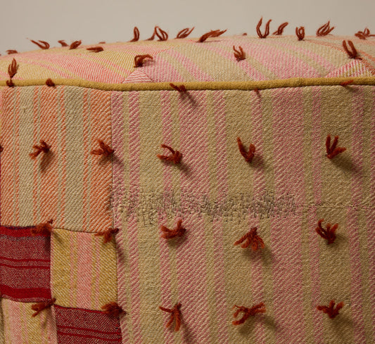 PIERCE & WARD CIRCLE OTTOMAN IN ANTIQUE QUILT