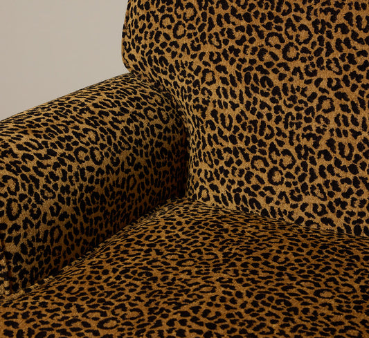 VINTAGE ARMCHAIR IN LEOPARD CHENILLE WITH SKIRT