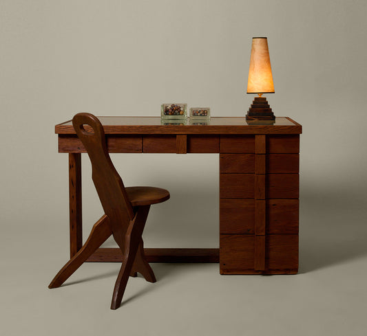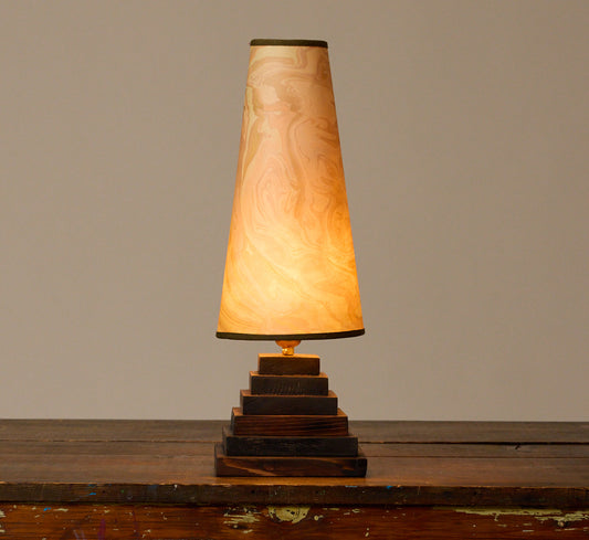 VINTAGE FOLK ART PINE PYRAMID TABLE LAMP WITH SUMINAGASHI SHADE