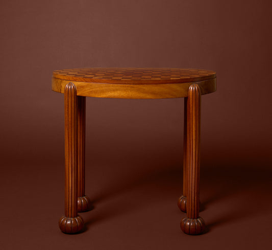 1920S FRENCH GUERIDON TABLE WITH CHECKERED TOP AND FLUTED LEGS