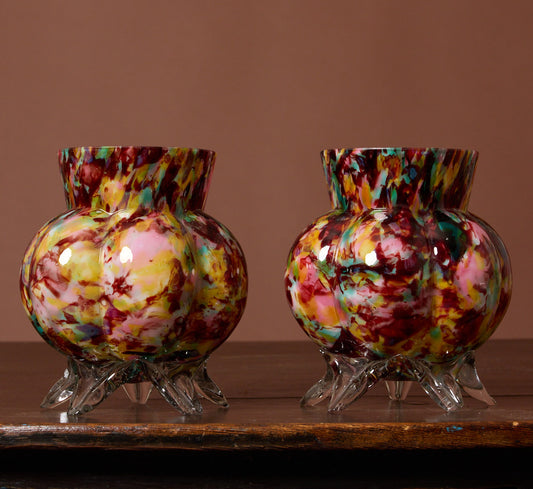 PAIR OF PETITE LATE 19TH CENTURY SPATTER GLASS FOOTED VASES
