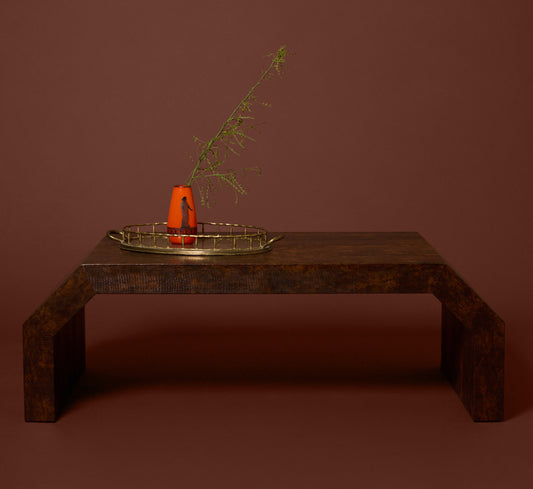 VINTAGE FAUX SNAKESKIN COFFEE TABLE IN THE STYLE OF KARL SPRINGER