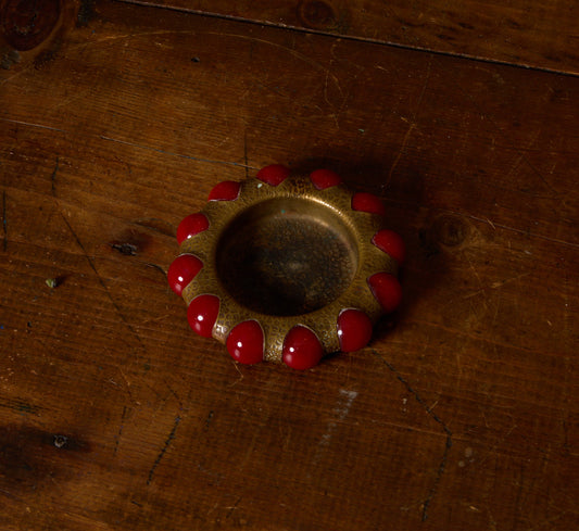 PATINATED BRASS FISHER JEWEL TRAY WITH RED MARBLE