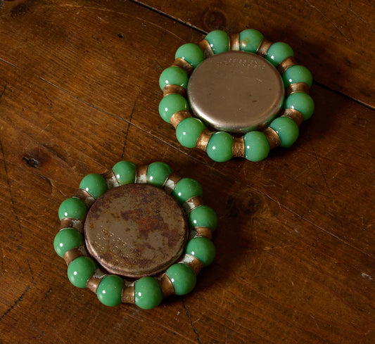 PAIR OF VINTAGE BRASS FISHER JEWEL TRAYS WITH JADE MARBLE