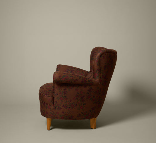 1930S WINGBACK LOUNGE CHAIR IN SPRING VINE FLORAL