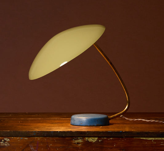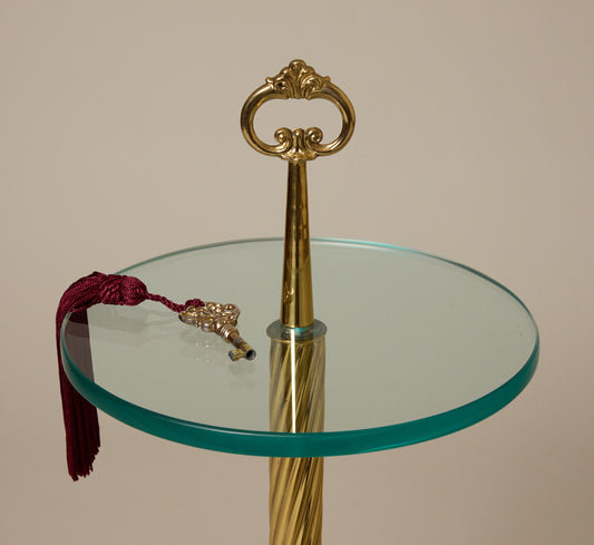 MID-CENTURY ITALIAN BLUE OPALINE & BRASS ASHTRAY