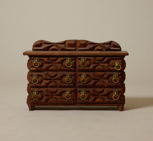 PETITE 19TH CENTURY TRAMP ART CHEST OF DRAWERS