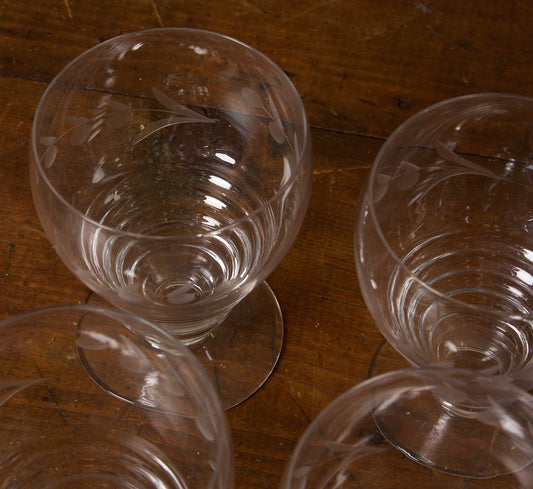 1920S ART DECO ENGRAVED GLASSWARE SET OF 9