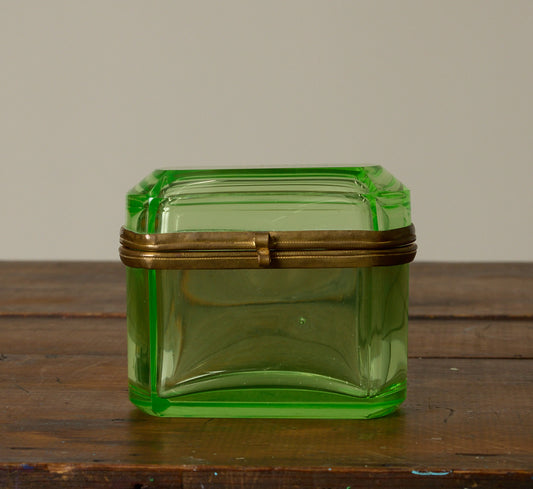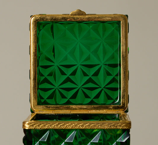 FRENCH VICTORIAN EMERALD CUT DIAMOND GLASS JEWELRY BOX