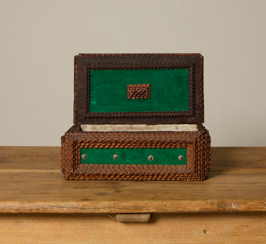 TRAMP ART BOX WITH GREEN VELVET DETAIL