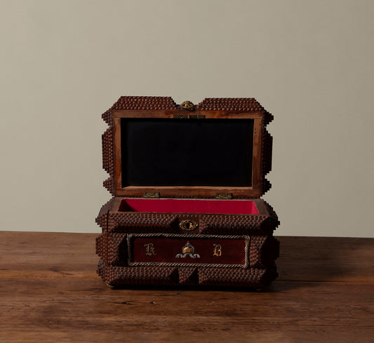 VINTAGE TRAMP ART JEWELRY BOX WITH BOTANICAL MOTIFS