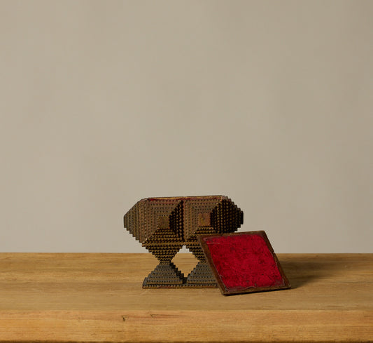 VINTAGE TRAMP ART LIDDED BOX LINED WITH VELVET