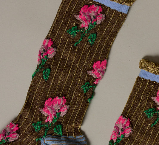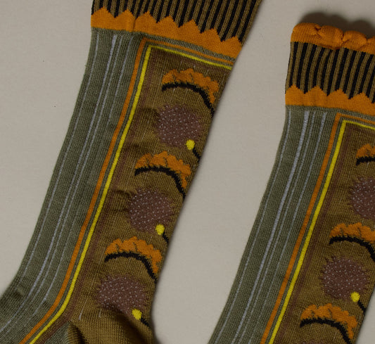 EXQUISITE J SOCKS IN ABSTRACT OLIVE