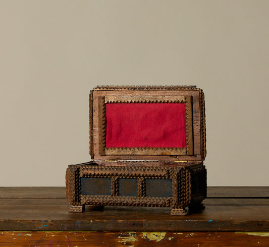 EARLY AMERICAN TRAMP ART JEWELRY BOX