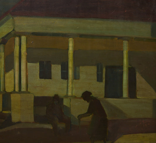 MID CENTURY MODERNIST SURREAL TOWN SQUARE SCENE