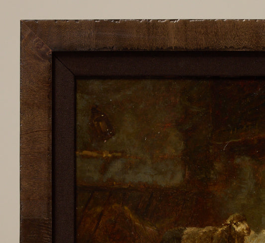 19TH CENTURY FRENCH SHEEP BARN SCENE BY CHARLES-EMILE JACQUE (FRENCH, 1813–1894)