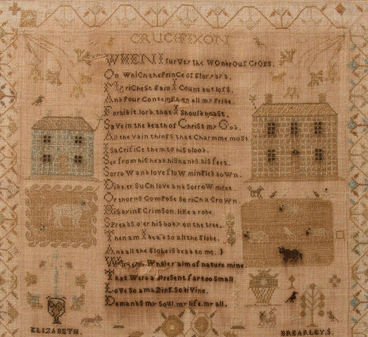 19TH CENTURY AMERICAN HAND STITCHED FOLK ART SAMPLER