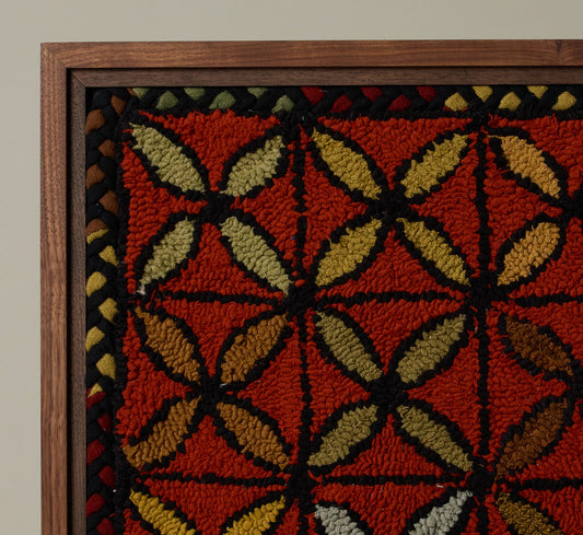 FRAMED EARLY 20TH CENTURY AMERICAN GEOMETRIC HOOKED RUG II