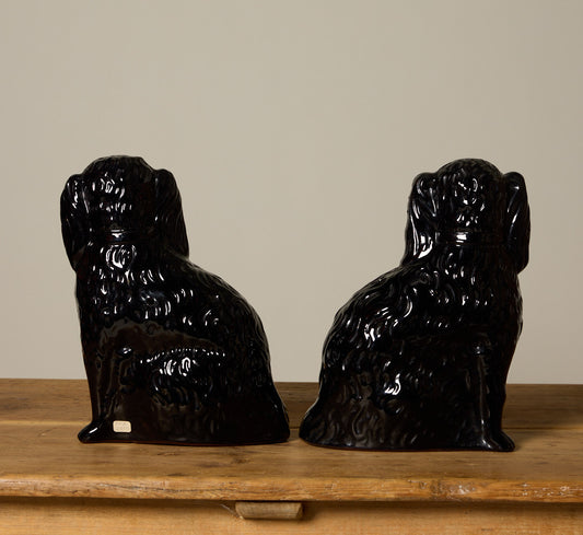 PAIR OF BLACK STAFFORDSHIRE SPANIEL FIGURES
