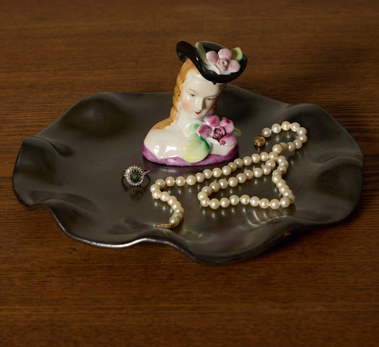 • ABRA CERAMIC FIGURINE DISH - METALLIC BLACK GLAZE / BUST