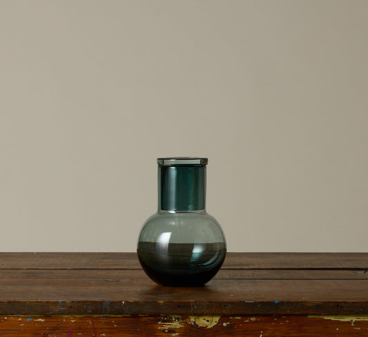 LAUSANNE HAND BLOWN GREEN GLASS ROUND CARAFE