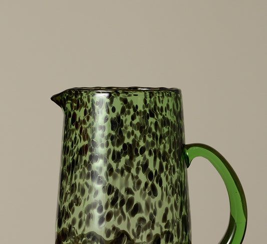 HAND BLOWN MINT TORTOISE SHELL GLASS PITCHER
