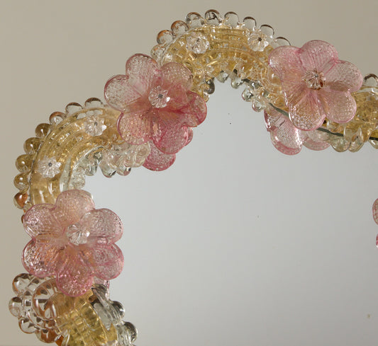 1960S MURANO MIRROR WITH SOFT PINK GOLD TONES