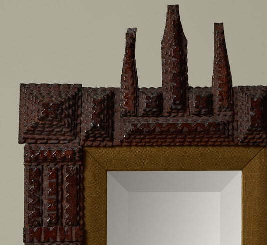 TRAMP ART MIRROR WITH SPIRES AND SEAWEED MAT