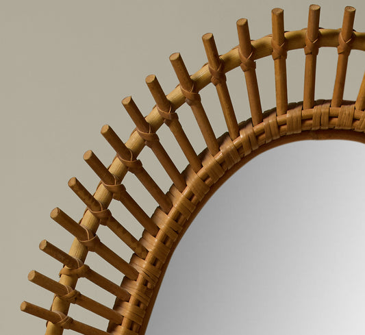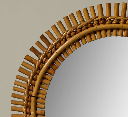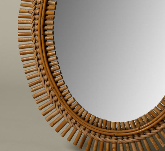 MID CENTURY MODERN SPIKED RATTAN WALL MIRROR III "CIRCLE"