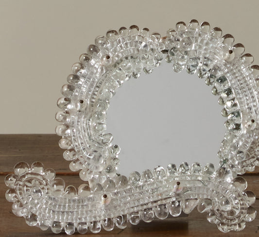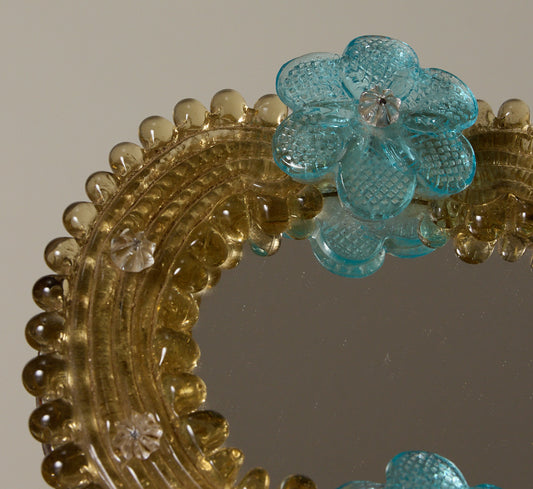 1960S PETITE MURANO GLASS MIRROR WITH BLUE FLOWERS