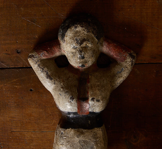 19TH CENTURY CAST IRON PAINTED "NAUGHTY NELLIE" FIGURINE