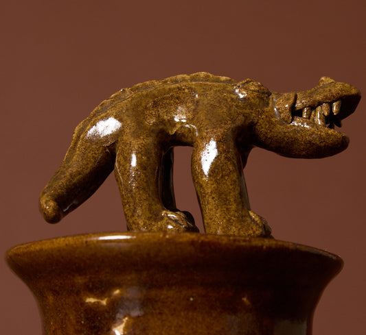 FOLK ART STUDIO POTTERY JAR WITH CROCODILE LID
