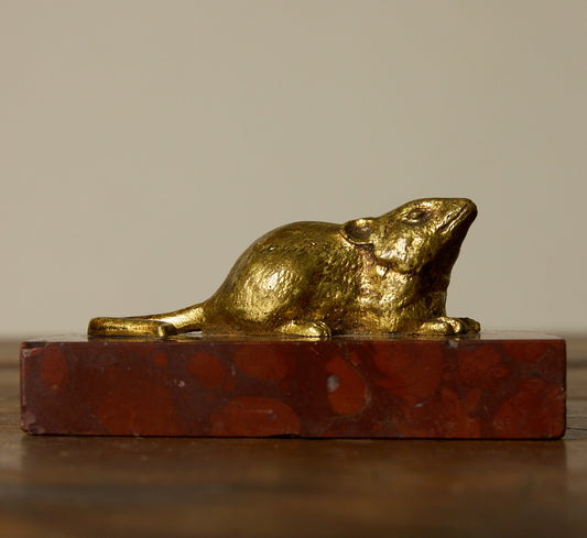 LA PETITE SOURIS: 1910S FRENCH BRONZE AND MARBLE PAPERWEIGHT