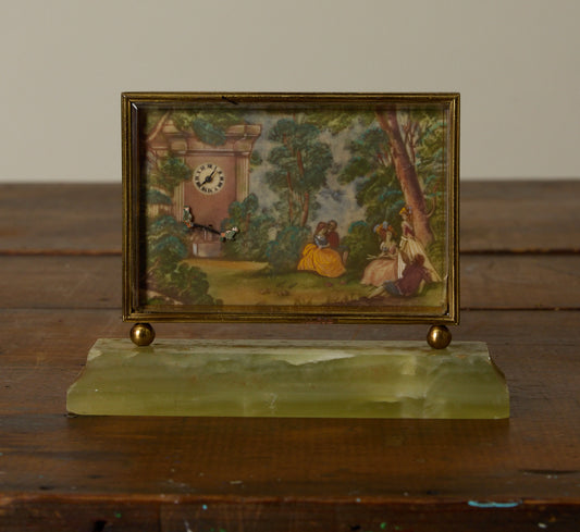ANTIQUE FRENCH AUTOMATON PICTURE CLOCK ON MARBLE PLINTH