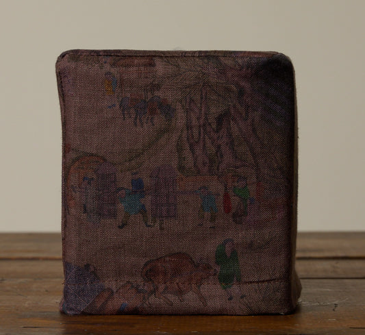 PIERCE & WARD VILLAGE SCENE IN PLUM LINEN TISSUE BOX COVER