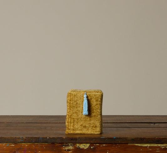 PIERCE & WARD STONE OLIVE TISSUE BOX COVER IN RAW SILK