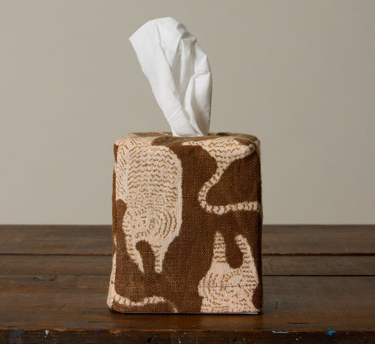 PIERCE & WARD VINTAGE TIGER BLOCK PRINT TISSUE BOX COVER