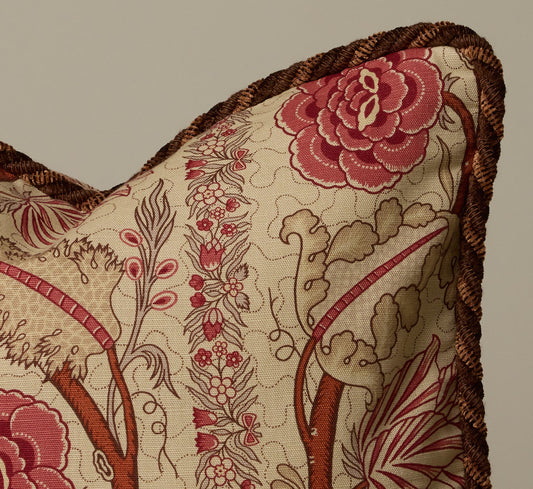 PIERCE & WARD GREEN AND PINK FLORAL CORD COVER IN RAW SILK