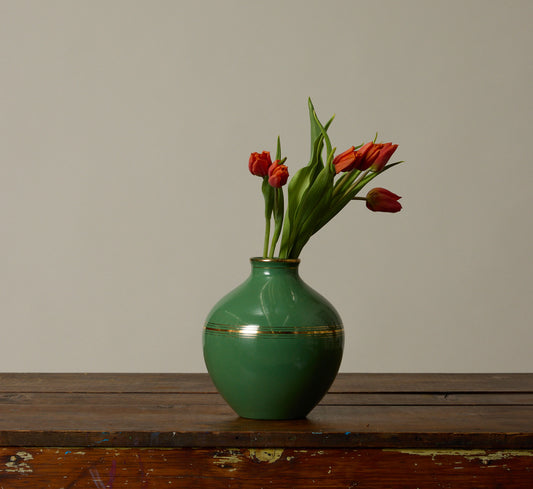 OVERSIZED VINTAGE MIDCENTURY STUDIO POTTERY VASE WITH EMERALD GLAZE