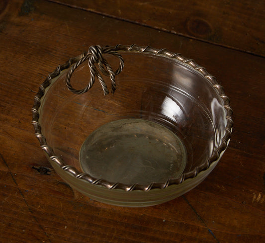 1940S FRENCH GLASS BOWL WITH SILVER ROPE EDGING