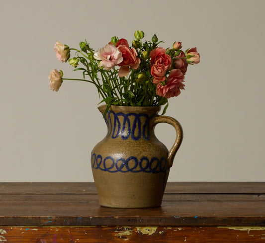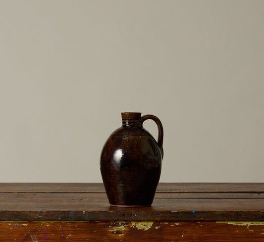 FOLK ART EARTHENWARE JUG WITH LOOP HANDLE