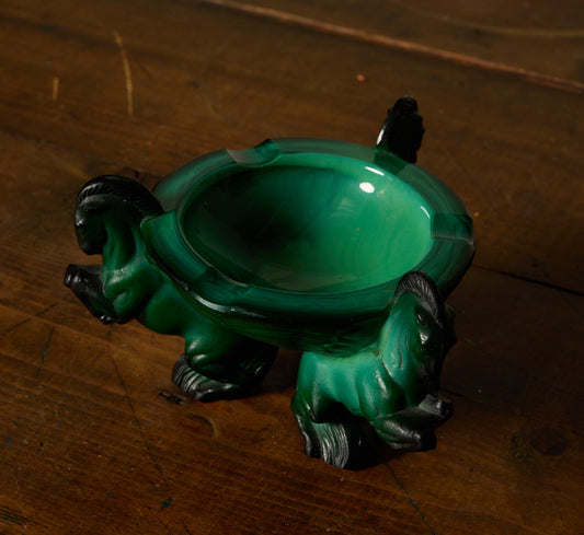 VINTAGE MURANO GLASS ASH TRAY IN PEACOCK