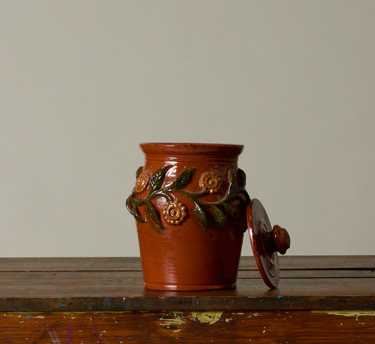 EARTHENWARE FOLK ART SWIRL VESSEL WITH LID I