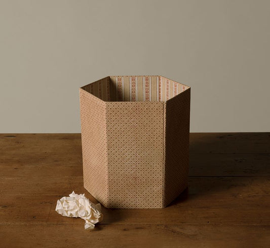 BLOCK PRINTED DOT & GRID HEXAGON COLLAPSIBLE BASKET IN OCHER