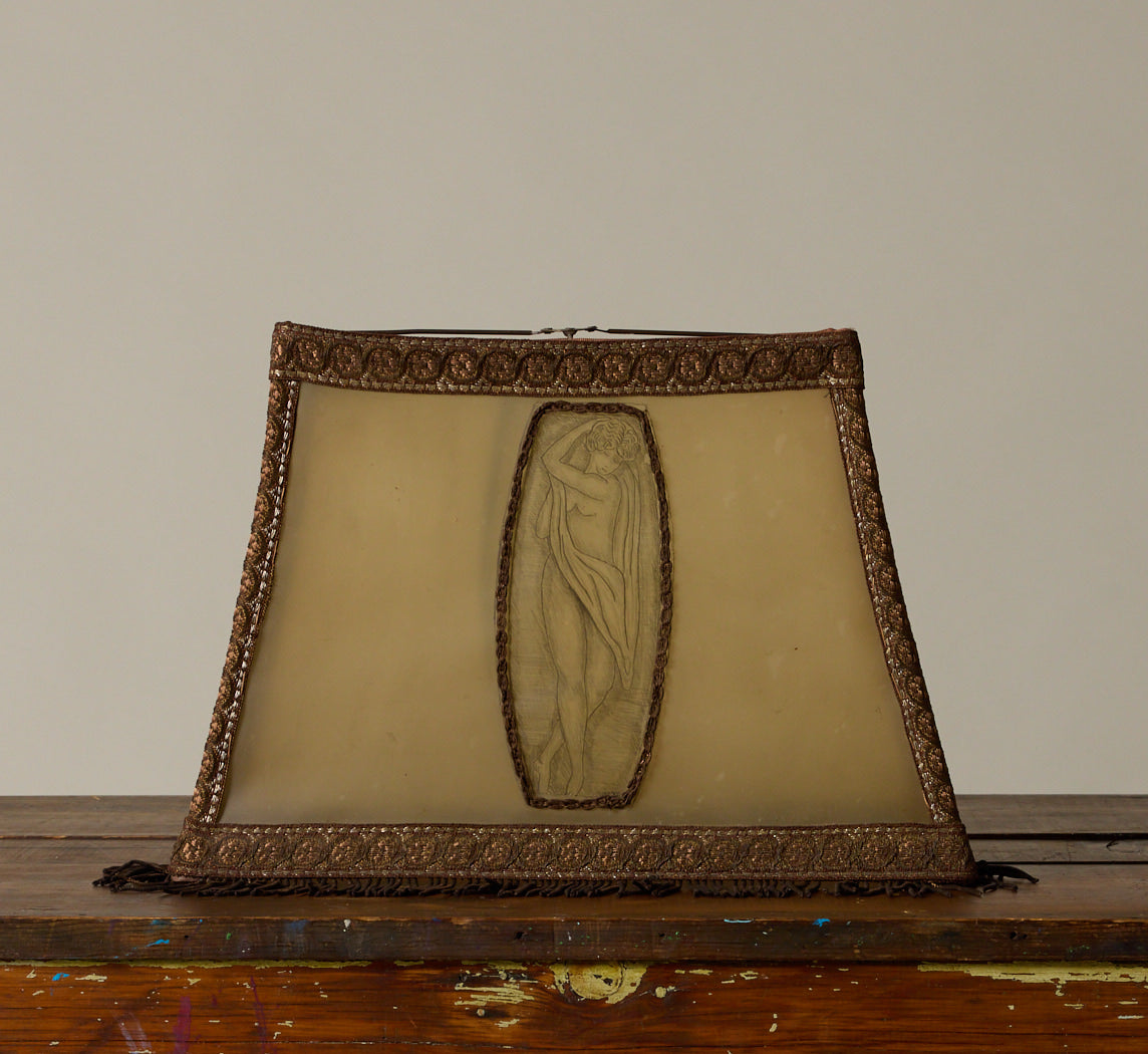 1920S FRENCH HAND PAINTED ART DECO LAMP SHADE