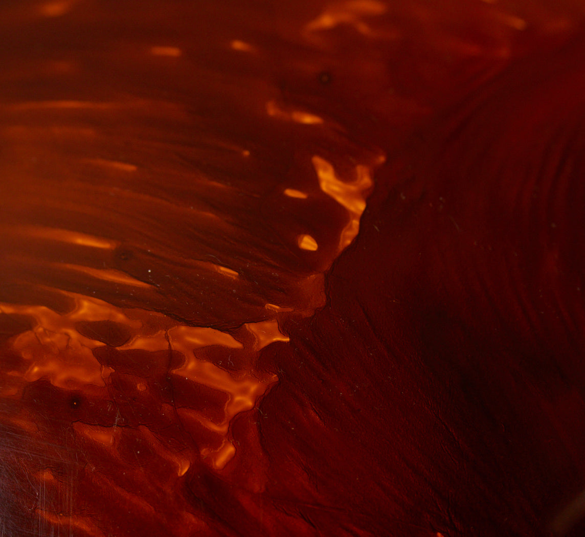 A 1970s Italian mushroom table lamp in lucite and brass with a tortoiseshell dome and warm patinated base, and a rose-toned lucite stem. Newly wired with a champagne twisted cord for US use.