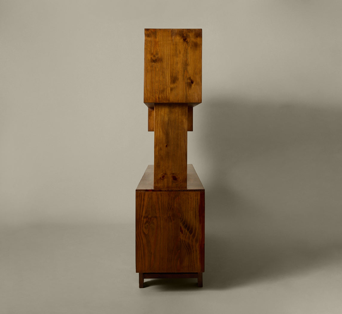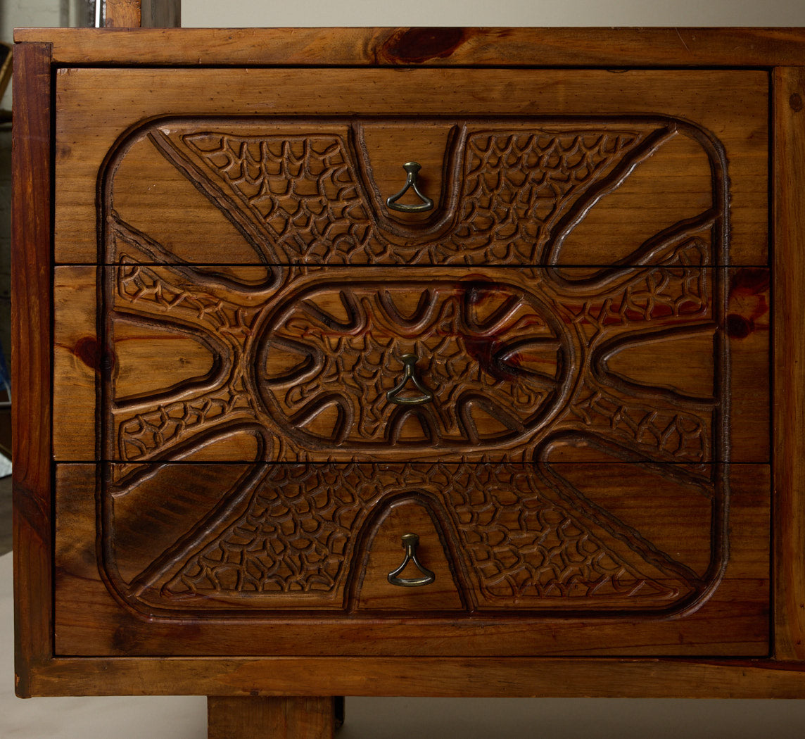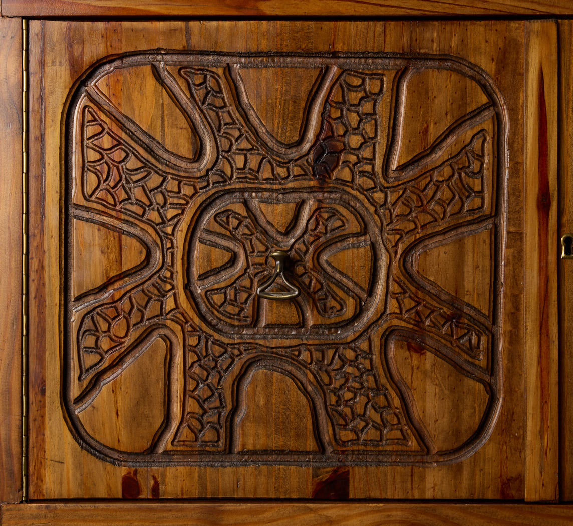 20TH CENTURY CARVED WOOD BRUTALIST CREDENZA