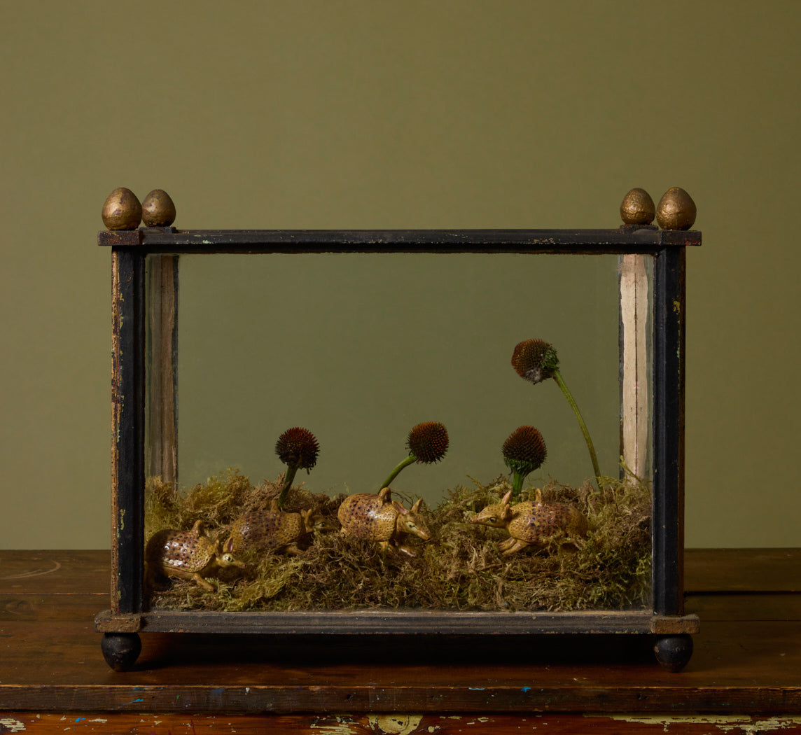 Armadillo ornament by Pearce Williams in glazed stoneware with a sculpted shell and hand painted spotted detailing. Finished with a velvet ribbon tie for hanging. Handmade in New Orleans especially for Pierce & Ward. Sold individually.