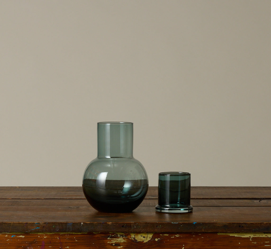 LAUSANNE HAND BLOWN GREEN GLASS ROUND CARAFE