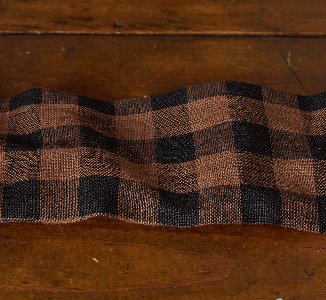 Pierce & Ward toffee plaid linen cord cover, featuring an elastic-cinched end for a secure closure and an open end for easy adjustment.